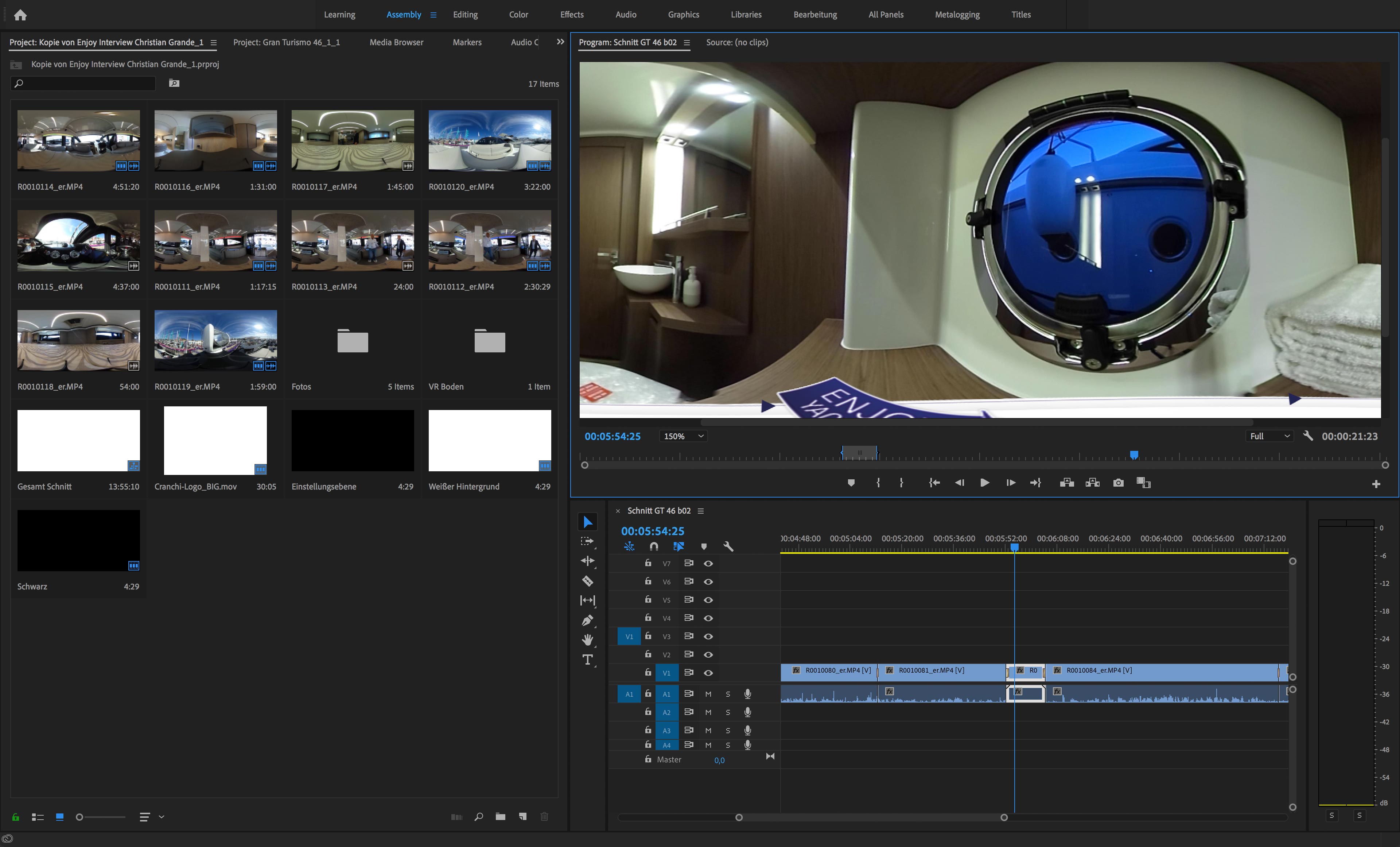 Der Zusammenschnitt der 360 Grad Szenen, der Intros, der Animationen und der Bauchbinden erfolgte in der neuesten Version von Adobe Premiere.