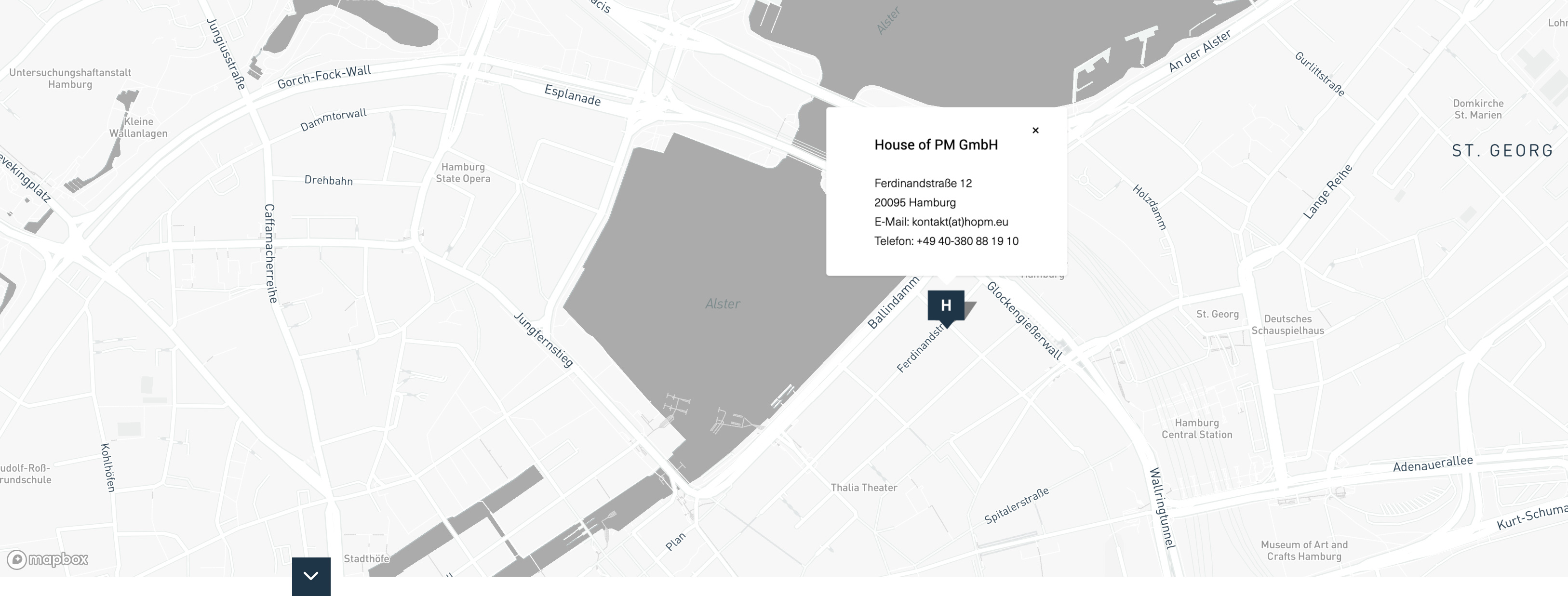 Interaktive Karte mit Angaben zum House of PM-Standort im neuen Corporate-Look.